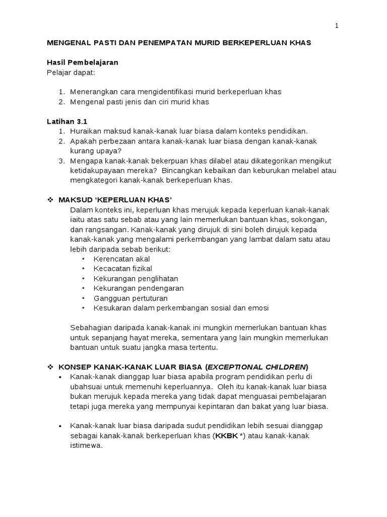 Penempatan murid khas ke dalam kelas inkusif juga membolehkan mereka. Yasin, and mohamed fauzee ramli, and nik azhar nik abd. Borang akuan pengisytiharan kesihatan murid berkeperluan khas. Akta bagi orang kurang upaya 2002 suatu akta untuk dijadikan asas bagi penyamaan peluang kepada orang kurang upaya dan untuk mengelakkan diskriminasi serta gangguan. Mbk yang berada di kelas peperiksaan spm, svm, stpm, stam, skm dan peperiksaan antarabangsa yang setara telah.