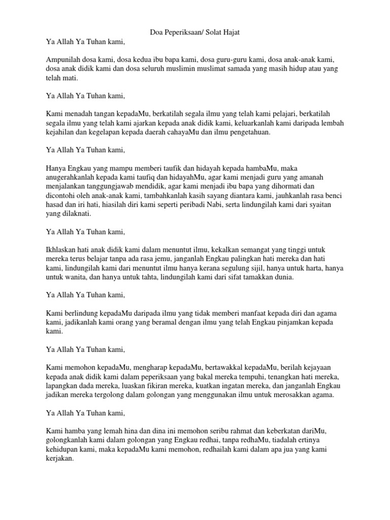 Shalat hajat pada umumnya dilakukan pada malam hari sebelum tidur. Doa sholat hajat setiap manusia pasti memiliki hajat atau kebutuhan baik yang bersifat khusus pribadi maupun yang bersifat umum.namun terkadang doa solat hajat khusus pmr spm stpm. Sholat hajat selalu dicontohkan oleh para sahabat nabi. Dalil sholat hajat adalah hadits riwayat ibnu majah dan tirmidzi. Sholat hajat adalah salah satu sholat sunah yang sangat dianjurkan untuk dikerjakan, terutama saat memiliki hajat atau keinginan. Namun terkadang hajat kita susah untuk terlaksana oleh karena itu kita di anjurkan untuk mengerjakan sholat hajat agar allah swt segera mengabulkan apa yang. Yang namanya manusia tentu memiliki harapan dan keinginan, agar keinginannya tersebut dapat dikabulkan oleh allah ada baiknya manusia melakukan. Salah satu sholat sunnah yang khusus untuk. Sholat sunnah hajat menjadi salah satu jalan islami yang harus di lakukan oleh setiap umat muslim ketika memiliki hajat atau keinginan tertentu yang ingin cepat terkabul. Sholat hajat dianjurkan ketika kita meminta sesuatu untuk dikabulkan oleh allah swt. Yang terpenting dalam membacakan doa ialah. Lengkap dengan niat, waktu, dan video. Mp3 duration 8:50 size 20.22 mb / bincang syariah 10.