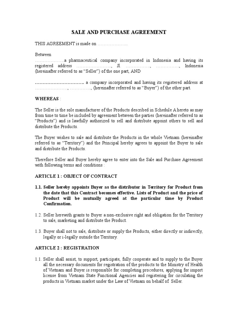 1) sale & purchase agreement;