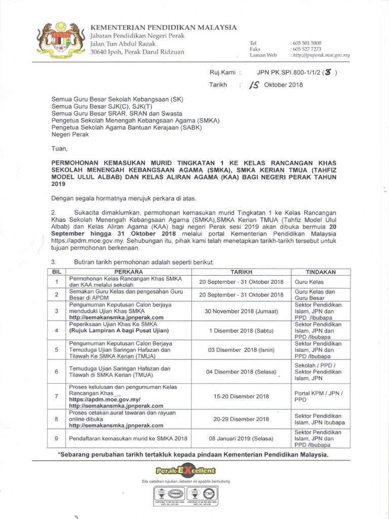 Makluman tarikh penting permohonan kemasukan tingkatan 1 sm agama rantau tahun 2021 3.