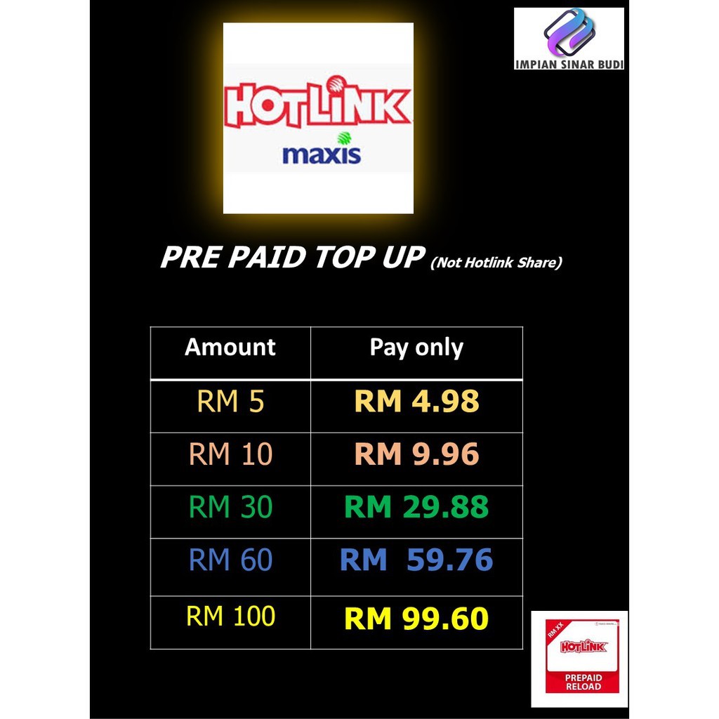 Related : Maxis Prepaid Top Up / Compare Latest Hotlink Prepaid Top Up Cards Price In Malaysia Harga July 2021 / In this modern age of telecommunication, calls and texts are some prepaid brands such as maxis' hotlink offers a lot of benefits and rewards to its users..